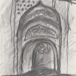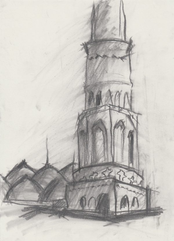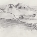 Kopjes, houtskool op olieverf